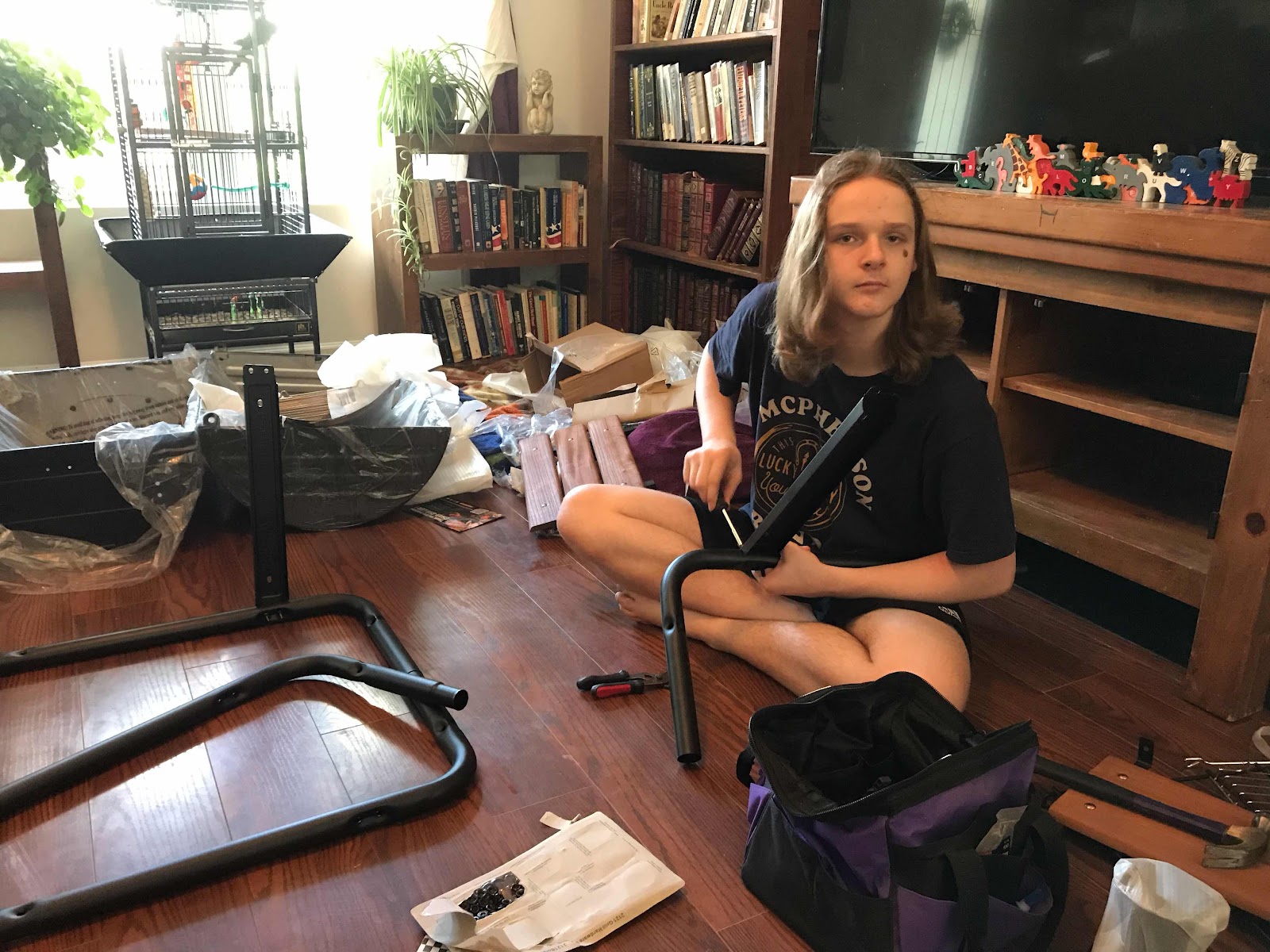 We assembled it in the living room.